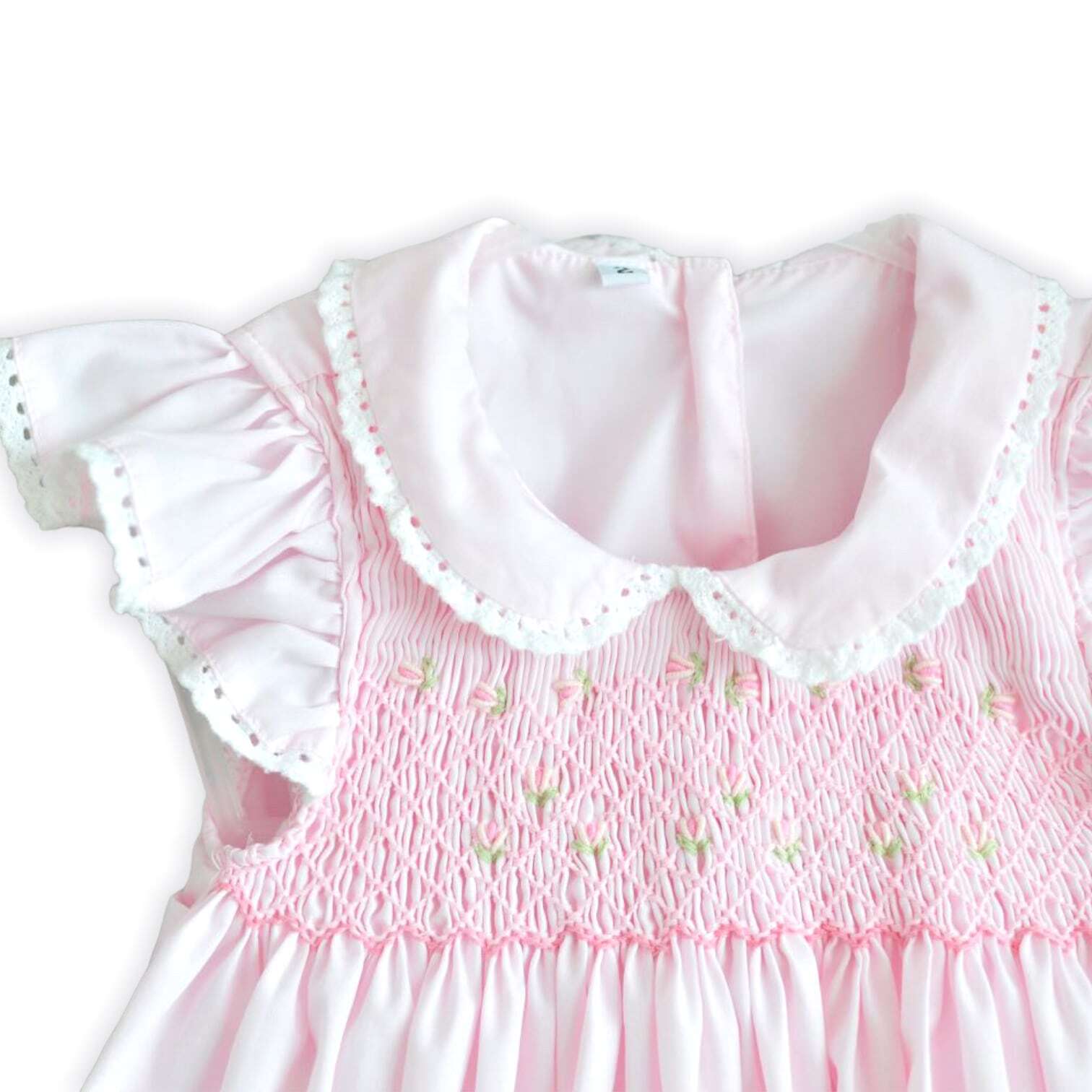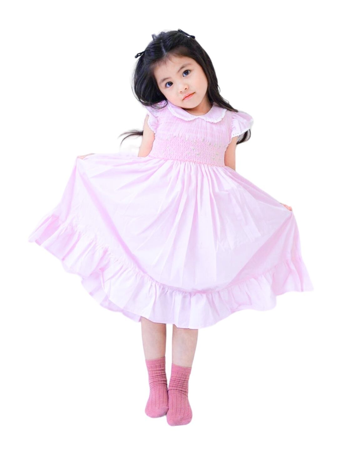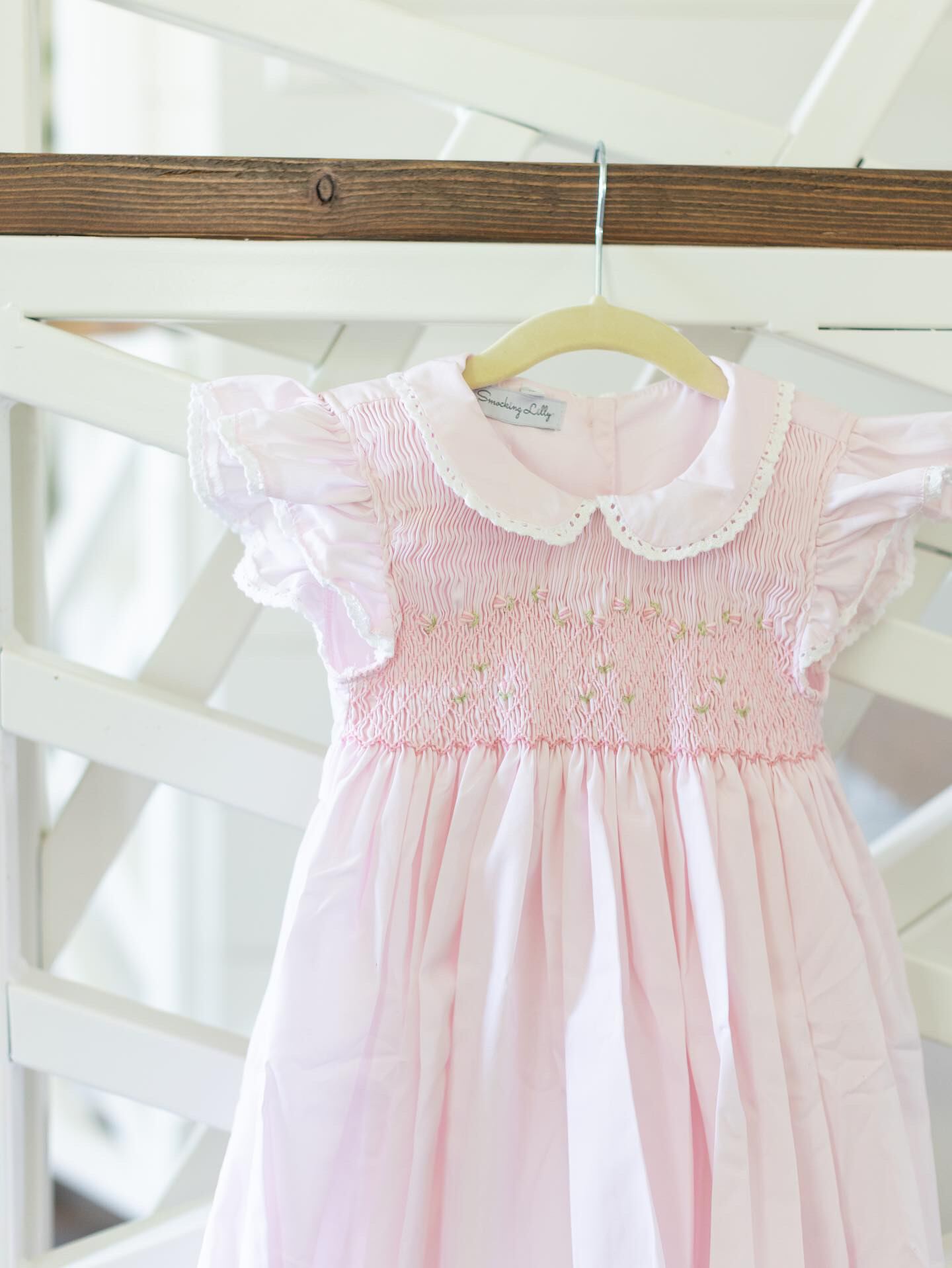 お花のような優しい色合いのピンクですので、お花とのお写真撮影にもピッタリなお洋服です。