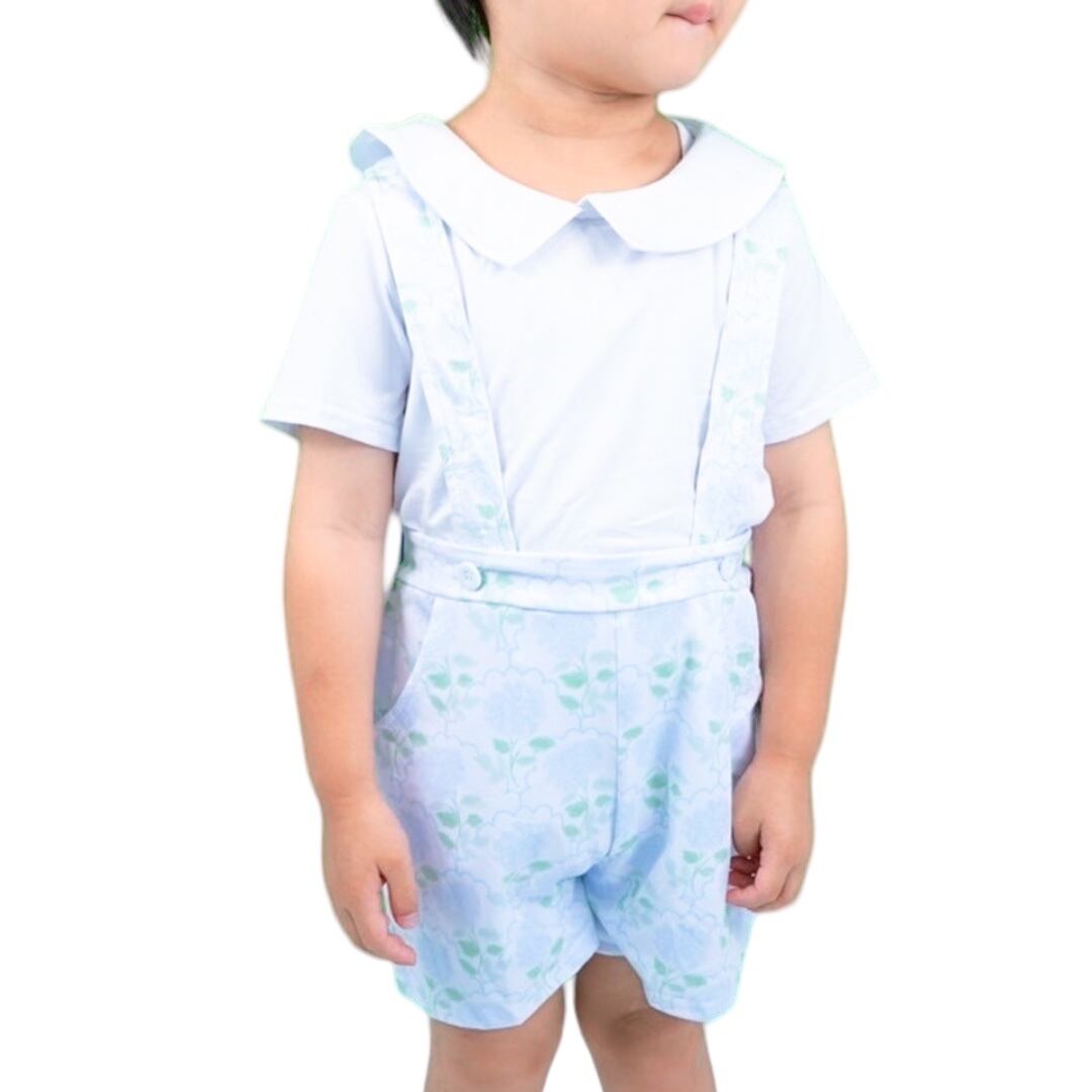 今年もあじさい柄の爽やかなセットアップが登場しました!男の子にぴったりの涼しげなデザインで、お出かけやイベントにぴったりです。トップスは襟付きのシャツで、ボトムスはポケット付きです。