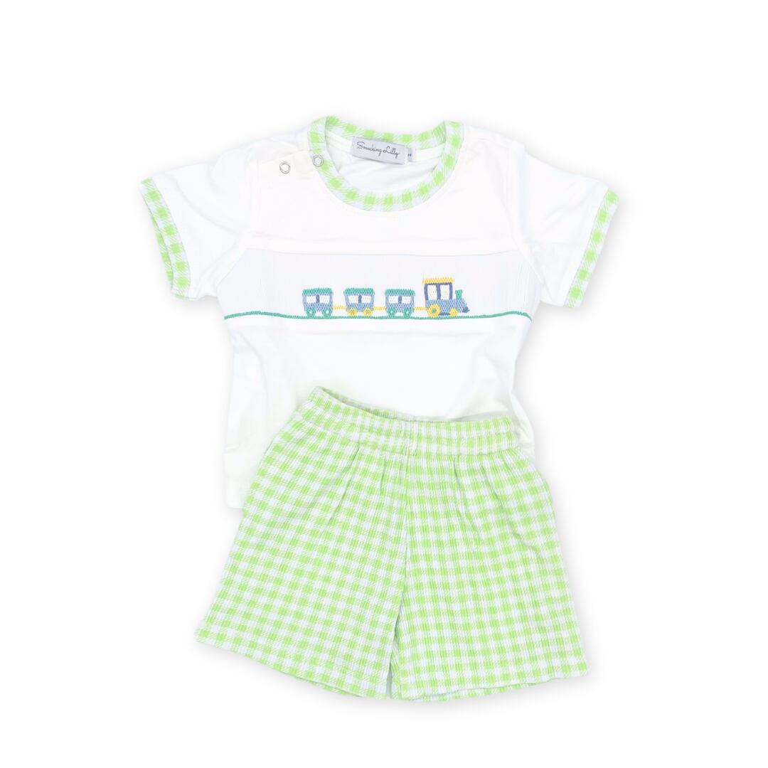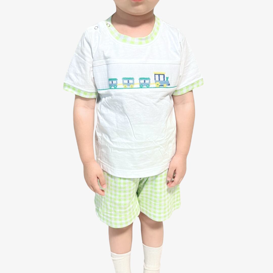 スモッキング刺繍(汽車柄)のセットアップ♪