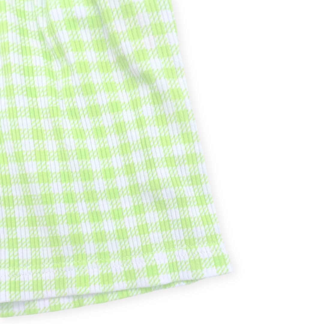 ギンガムチェック生地は薄手でやわらかく、ストレッチが効いているものを採用しました。